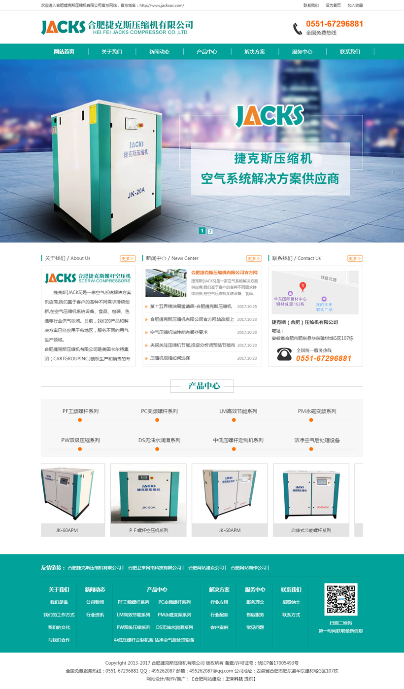 合肥捷克斯壓縮機(jī)有限公司[http://www.jacksac.com/]是美國(guó)卡爾特集團(tuán)(CARTGROUPINC.)授權(quán)生產(chǎn)和銷售的專業(yè)制造商,專業(yè)生產(chǎn)食品級(jí)水潤(rùn)滑無油螺桿空壓機(jī)、微油螺桿空壓機(jī)及空氣凈化后處理設(shè)備。