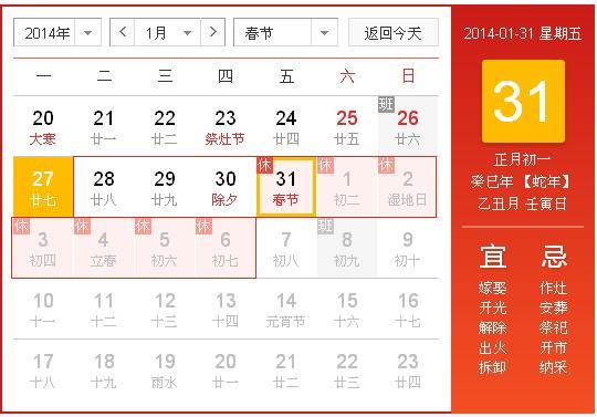 合肥衛(wèi)來網(wǎng)絡科技有限公司2014放假安排:從2014年01月26日(農(nóng)歷臘月二十六日)-至2014年02月5日(農(nóng)歷正月初六)為放假期間,共11天,2013年02月6日(正月初七)正式上班。